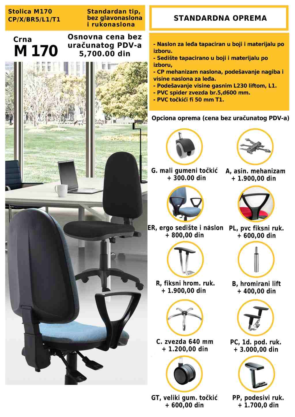 Prikazana cena se odnosi na osnovni model stolice, cenovnik dodatnih opcija u nastavku.