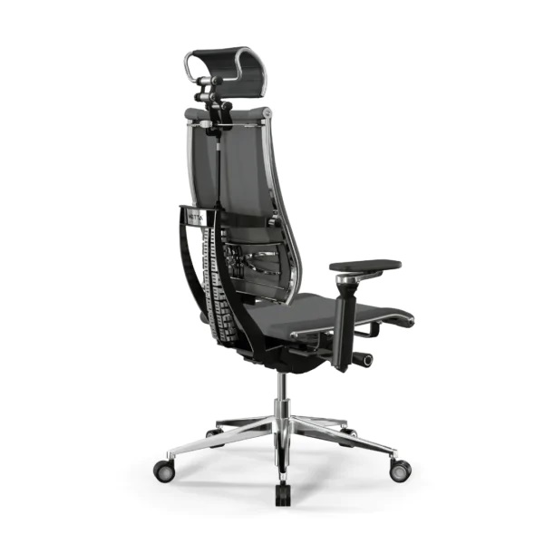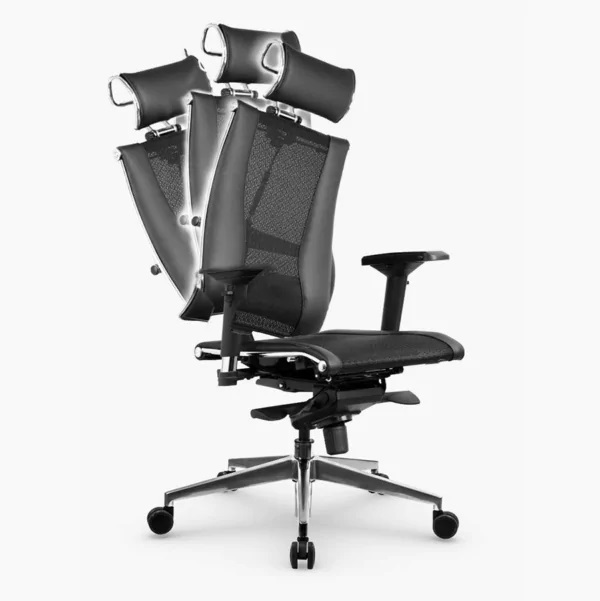 Metalni ram naslona za ledja sa inovativnim i jedinstvenim dizajnom koji omogućava podešavanje naslona u 4 pozicije (levo, desno, gore, dole). Verno prati kretanje ledjnog naslona, pomaže pri istezanju ledja posle dugotrajnog sedenja tako što je stolicu moguće koristiti u ležećem položaju. Stolica se može klasifikovati kao medicinsko pomagalo za bolna ledja srednjeg i visokog inteziteta korisnika.