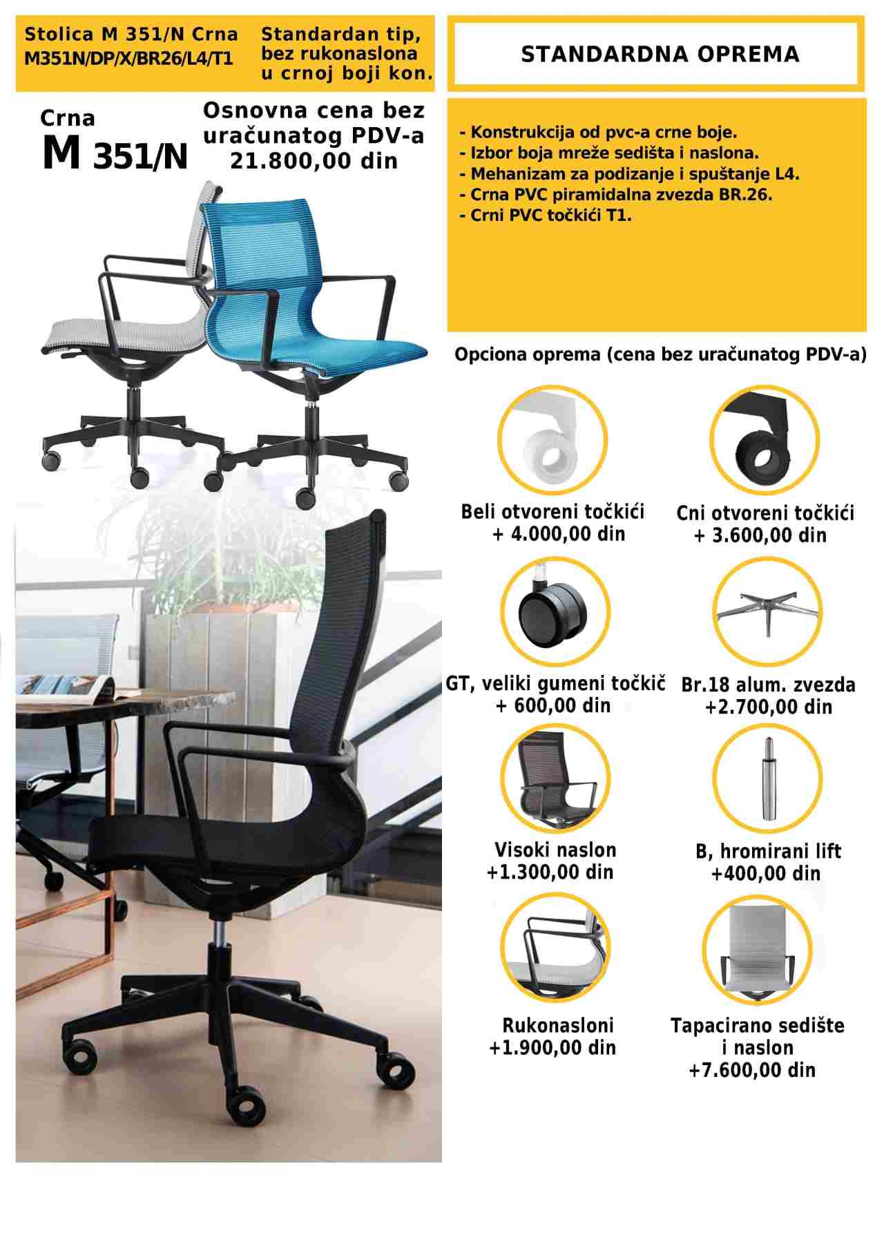 Osnovna cena modela sa niskim naslonom za ledja, bez rukonaslona, pvc zvezdom i pvc točkićima je 25.320,00, cenovnik dodatnih opcija je prikazan u nastavku. Ostale doplate i dodatke možete videti u cenovniku dodatnih opcija