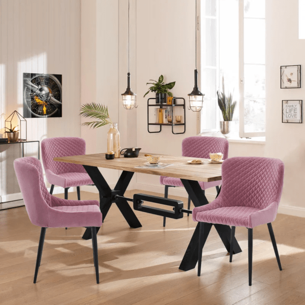 Tapacirano sedište i naslon izrađeni od pliša dostupnog u modernim bojama (žuta, plava, siva), pružaju dodatni osećaj luksuza i udobnosti.