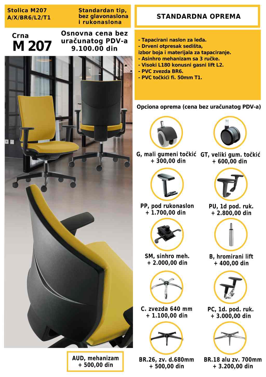 Prikazana cena se odnosi na osnovni model radne stolice, cenovnik dodatnih opcija u nastavku.