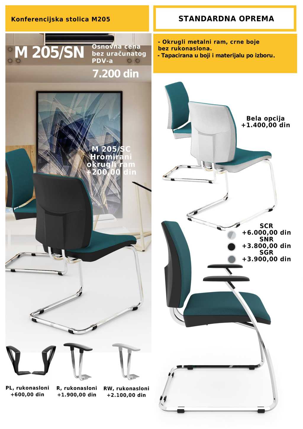 Prikazana cena se odnosi na osnovni model stolice, cenovnik dodatnih opcija u nastavku.