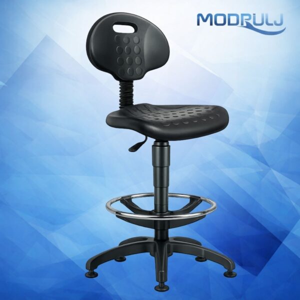 Model uključuje metalni prsten koji služi kao oslonac za noge. Prsten se koristi kada je laboratorijska stolica podešena na veću visinu ili kada se koristi uz više radne površine.