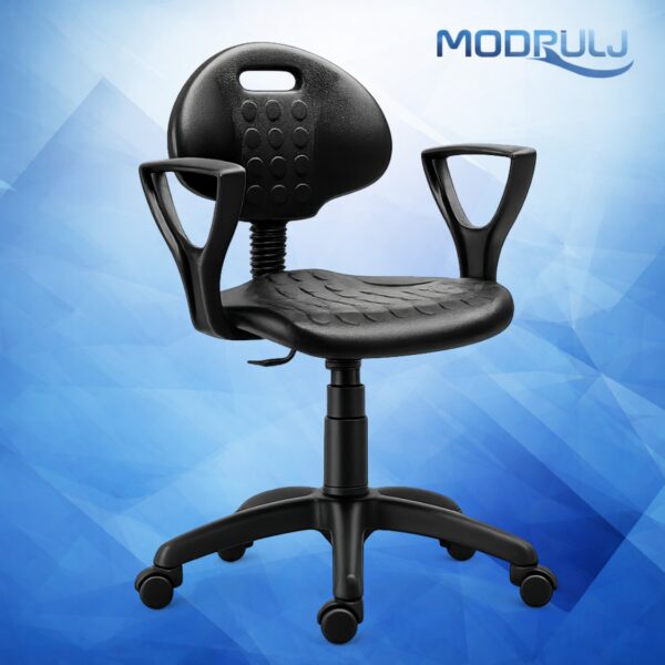 Sedalni deo i naslon izrađeni su od poliuretana. Materijal je kompaktan i pogodan za radna okruženja gde je potrebno lako čišćenje i dugotrajna upotreba stolice.
