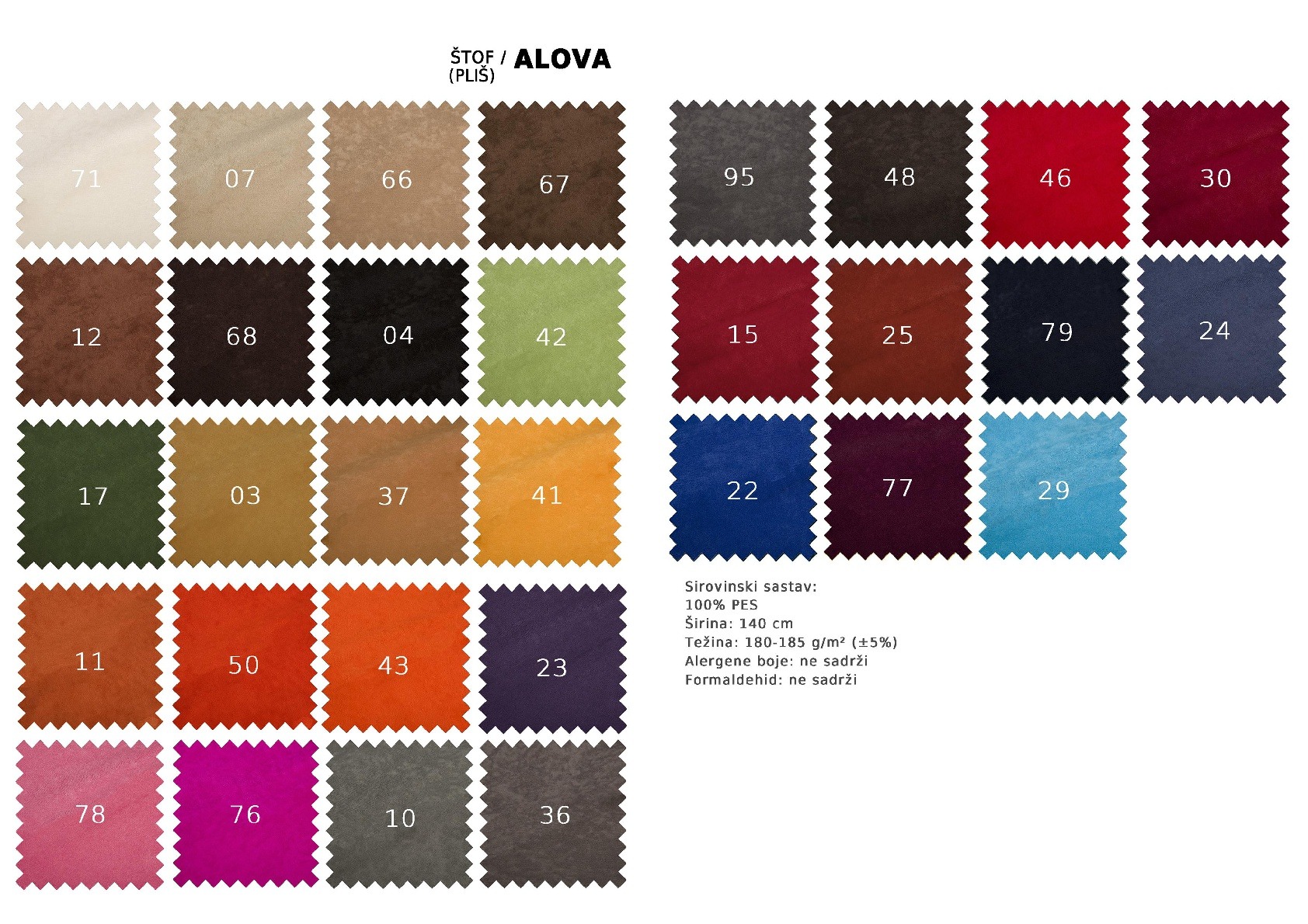 Materijal za tapaciranje ALOVA, u sklopu osnovne cene proizvoda osim ako nije drugačije navedeno