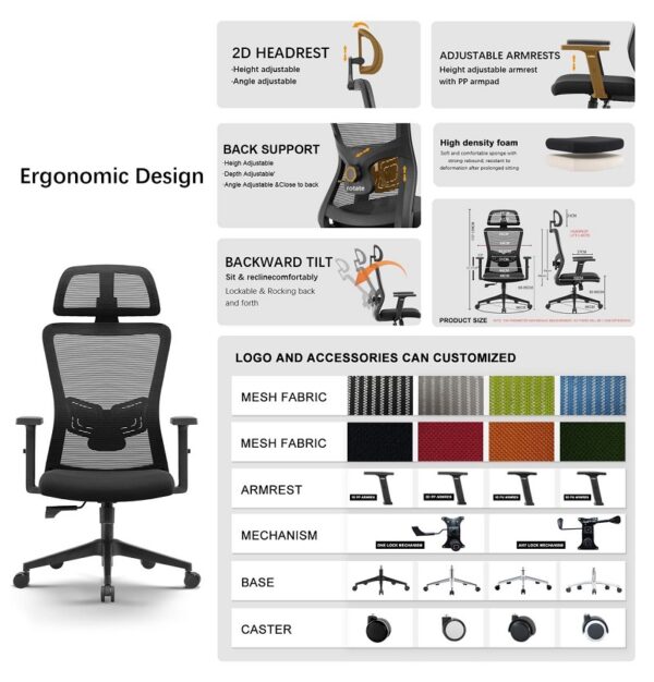 - Naslon za leđa u crnoj mreži (izbor boja mreže i materijala)