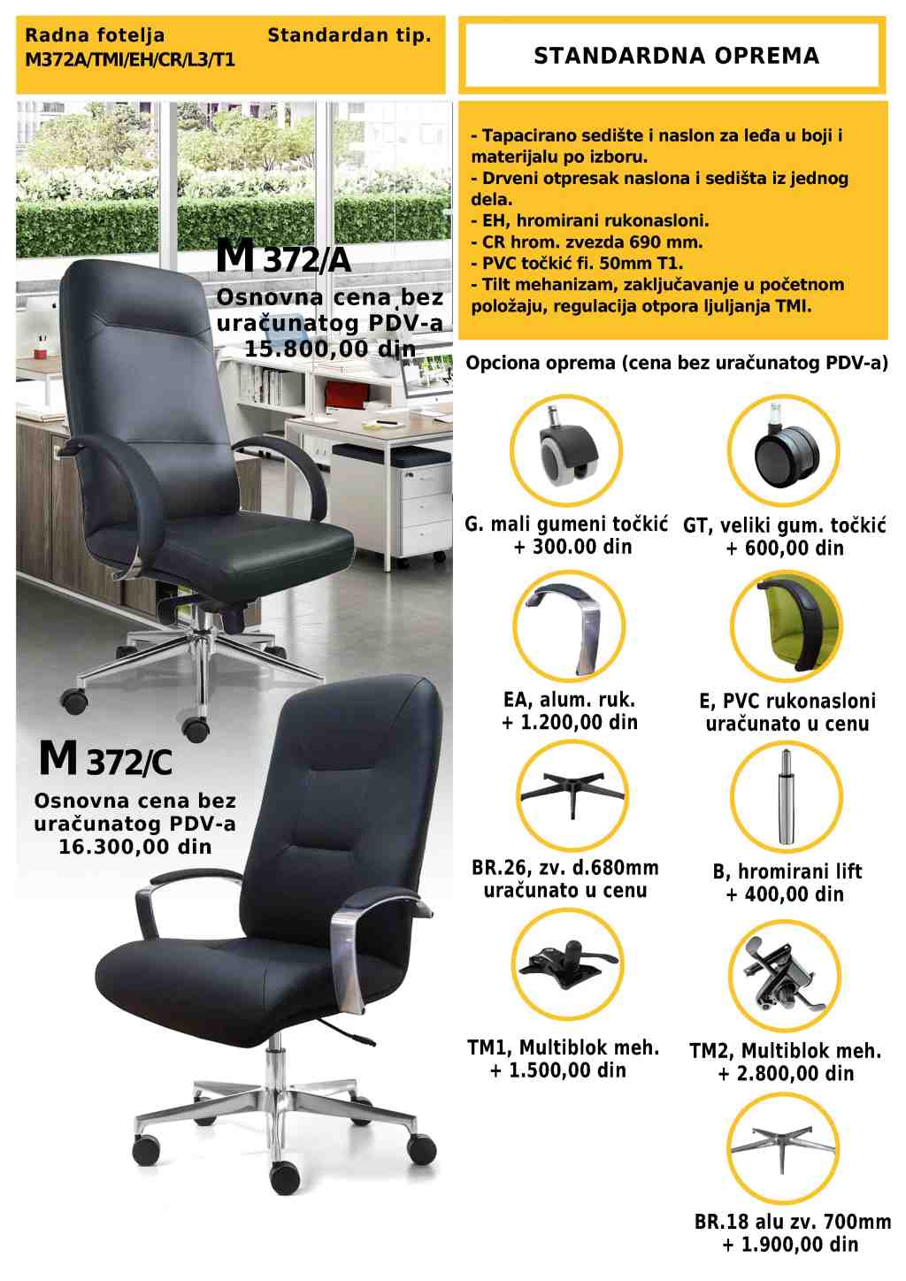 Radna fotelja M 372CU ponudi je i model sa niskim naslonom za ledja.