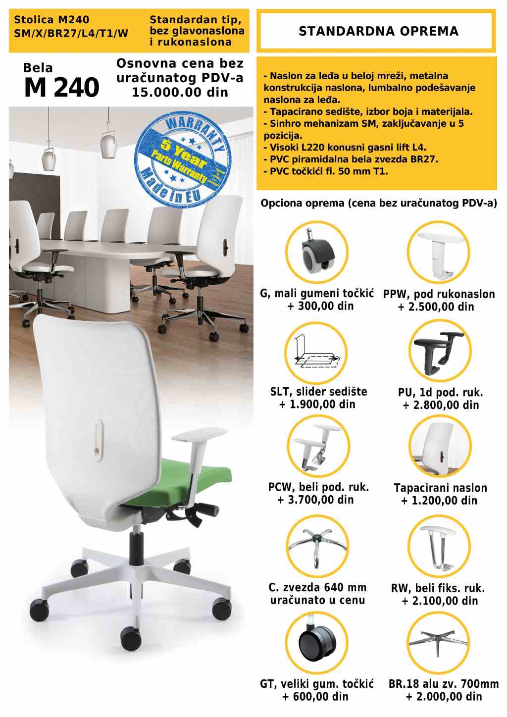 Radna stolica M 240w/OM: Prikazana cena se odnosi na osnovni model radne stolice, cenovnik dodatnih opcija u nastavku.