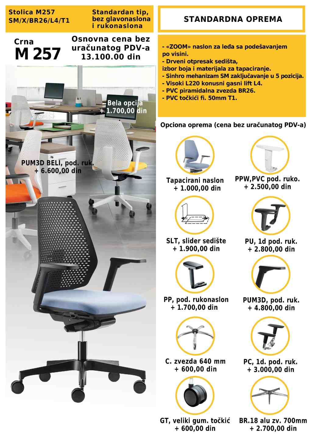 Radna stolica M 257W/OM: Prikazana cena se odnosi na osnovni model radne stolice, cenovnik dodatnih opcija u nastavku.