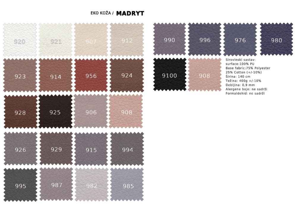 Materijal za tapaciranje EKO KOŽA, ulazi u osnovnu cenu proizvoda