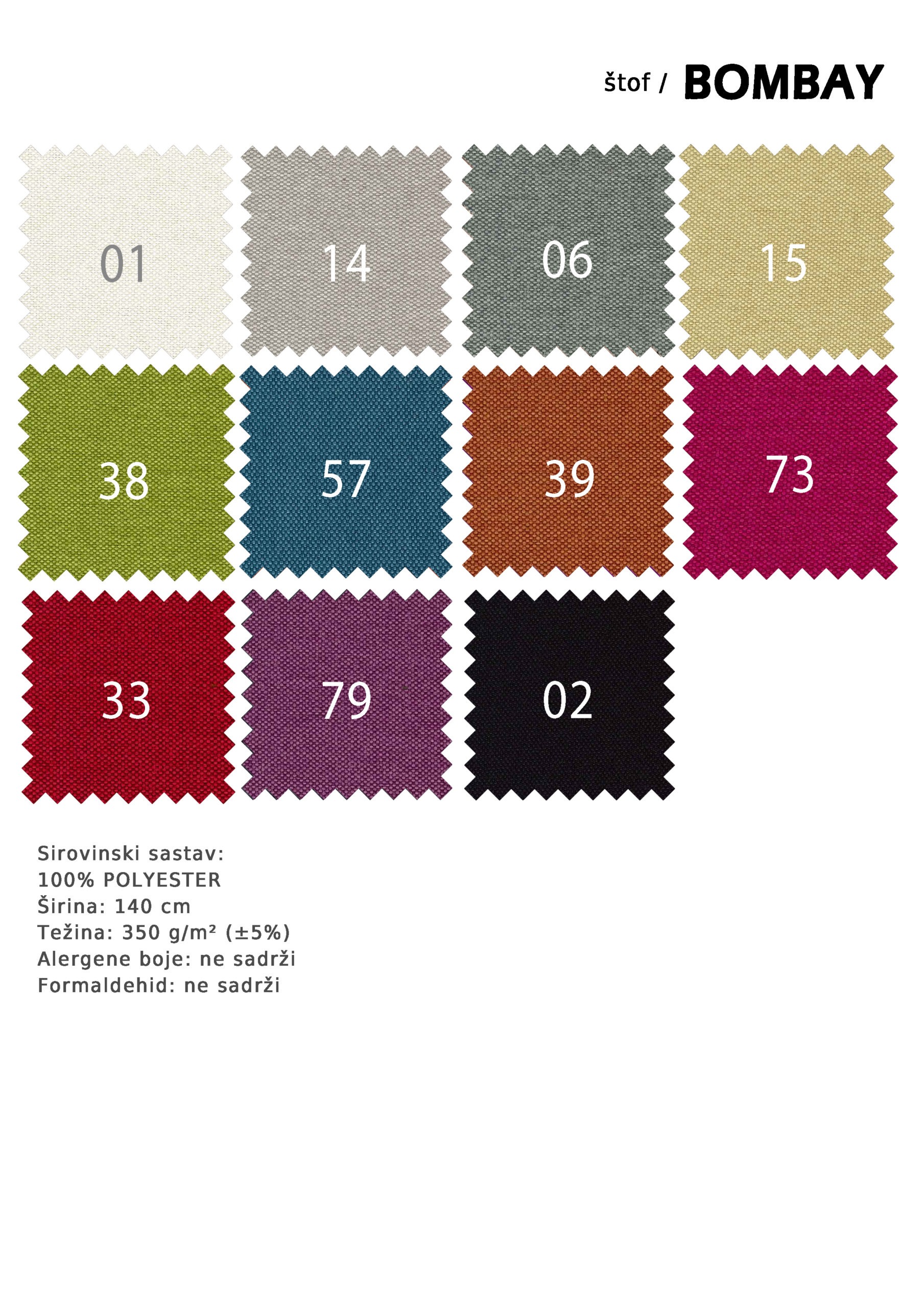 Materijal za tapaciranje BOMBAY, ulazi u osnovnu cenu proizvoda