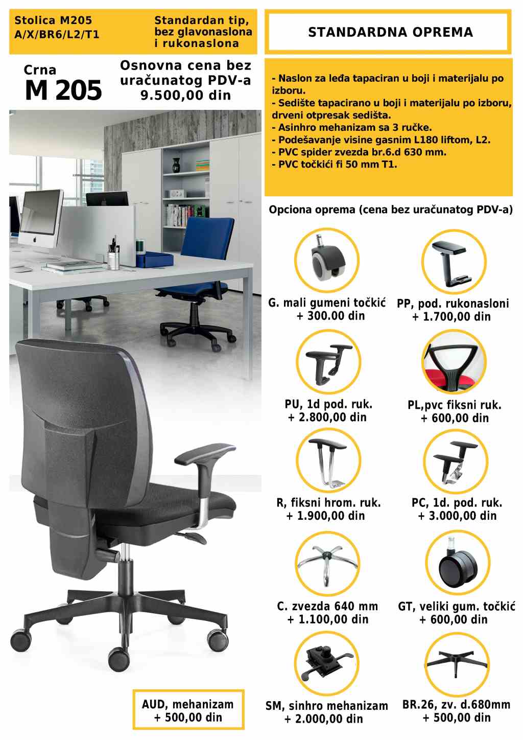 Stolica za računar Modrulj M 205/OM,  više o osnovnom modelu, izgledu i dodatnim opcijama u nastavku: